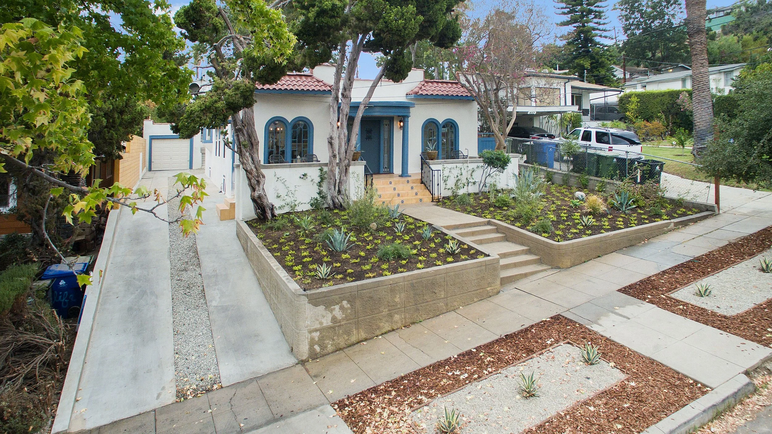 Set up off the street, this elegant Spanish Bungalow has been fully renovated with contemporary details. There’s a new master suite and open floor plan as well as wide-plank oak flooring, HVAC system, recessed lighting and fully renovated bathrooms. The kitchen has solid surface counter tops, shaker-style cabinets and stainless steel appliances. The front room works very well as an at home office/guest room or music/tv room. The rear yard has multiple destinations with a mature shade tree, downtown views and sliding door access from both kitchen and master suite. Almost 8,000 square feet lot zoned LAR2. Located on quiet street with central access to Silver Lake and northeast LA and a 10-minute drive downtown. Check out virtual tour link to view interactive 3D floorplan and aerial video or www.1647Waterloo.com.